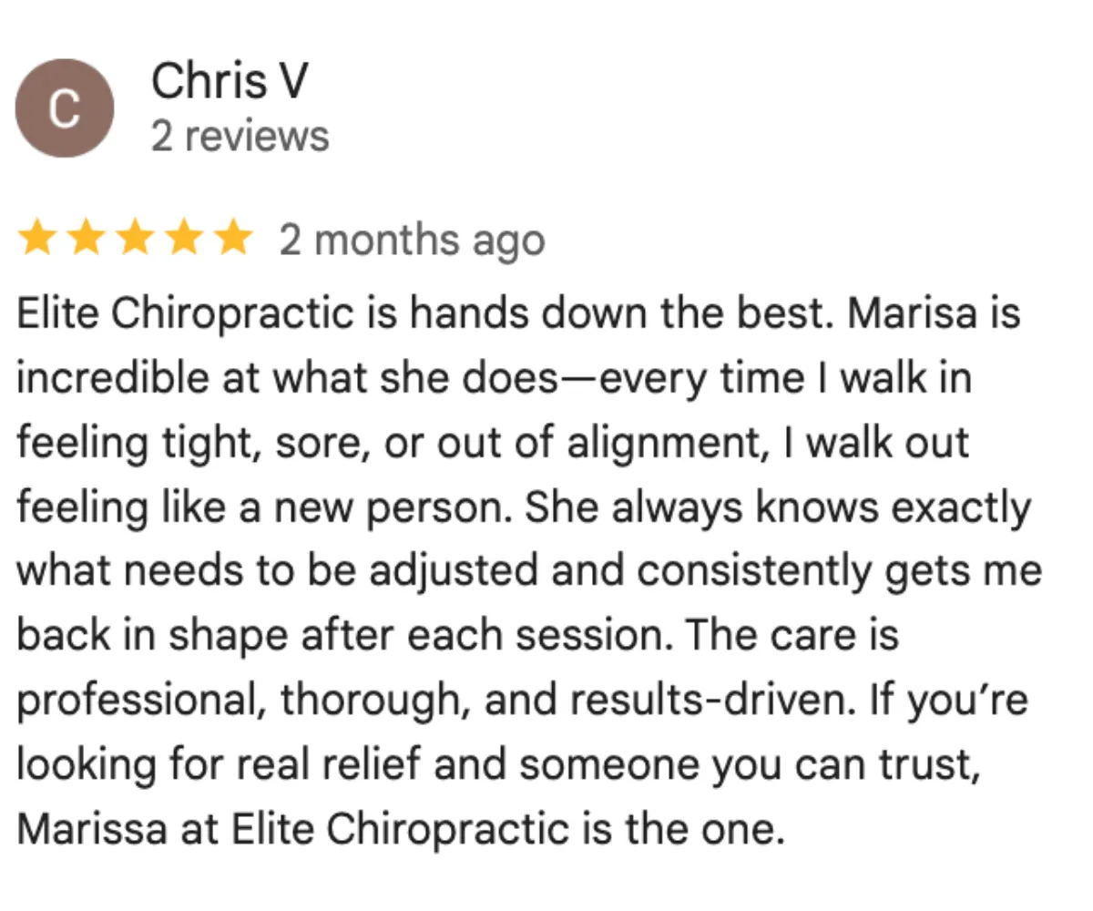 This website is operated by Elite Chiropractic & Wellness. By submitting your information, you agree to receive communications from Elite Chiropractic & Wellness as described in our Privacy Policy & Terms of service.